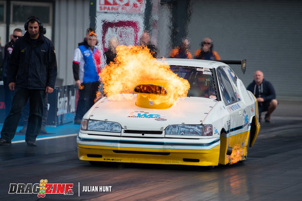 With Santa Pod’s spectator areas full to capacity the huge crowd was treated to the very best drag racing on offer from the UK and all of Europe. On top of all that there were exhibition runs from the two house jet cars, crazy Frenchman Eric Teboul and his low five-second Rocket Bike. Fans also got to witness a series of match races between Tony Betts Nostalgia Funny Car and Nick Davies shaking down the new I.C.E. Automotive Racing Engines Pro Mod!