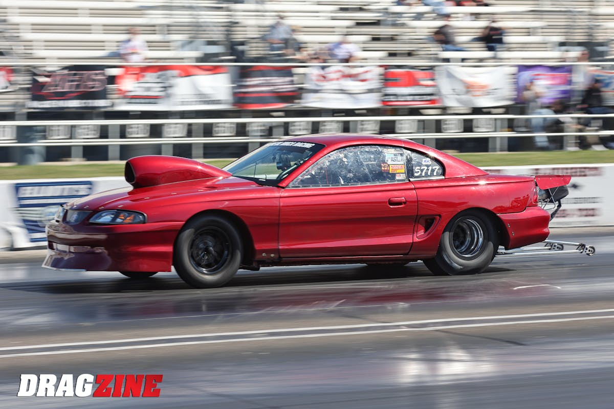 Small-tire racer CJ Buckner went for a wild ride early Sunday morning when the brakes appeared to fail on his nitrous-fed "Raggedy Ann" Fox body, sending him off the end of the track, into a line of tractor tires, and tumbling to a stop deep in the woods. Buckner was pulled from the car unhurt and the fire in the cockpit was quickly extinguished.