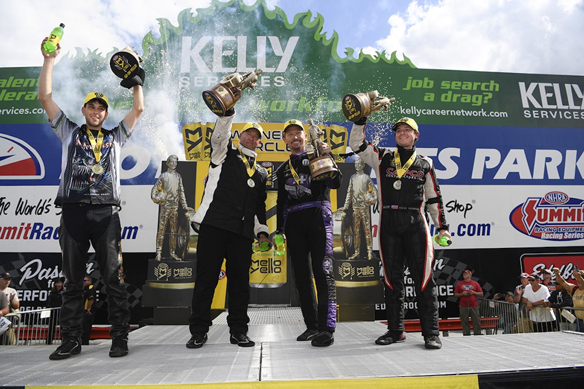 Jack Beckman (Top Fuel), Bo Butner (Pro Stock) and LE Tonglet (Pro Stock Motorcycle) were also winners in their respective categories at the 12th of 24 events on the 2017 NHRA Mello Yello Drag Racing Series schedule.
