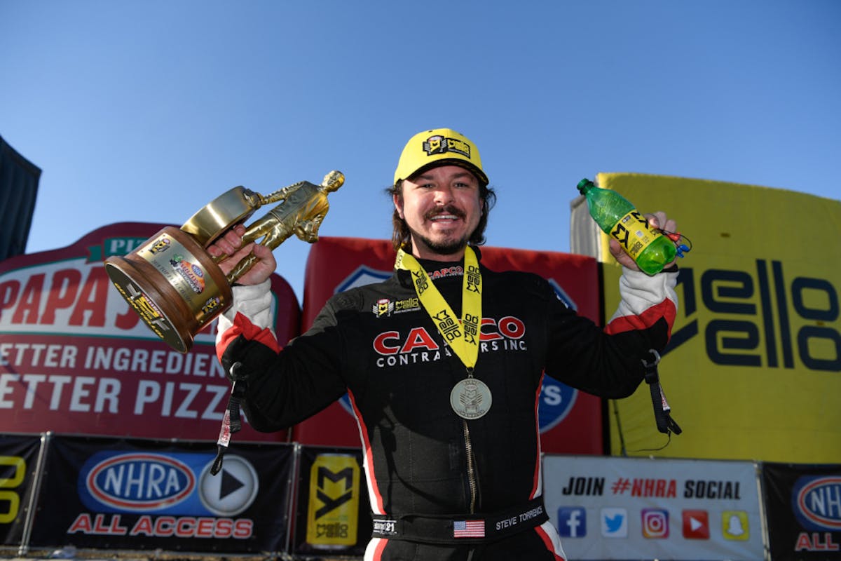 Torrence powered his Capco Contractors/Torrence Racing dragster to the Top Fuel victory with a run of 3.729 at 330.72 to take down Scott Palmer in the final round. After locking down a career-best eight victories in 2017, Torrence recorded a victory in Phoenix for the first time in his career.