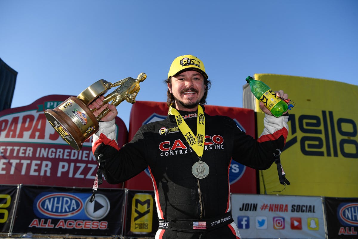 Torrence powered his Capco Contractors/Torrence Racing dragster to the Top Fuel victory with a run of 3.729 at 330.72 to take down Scott Palmer in the final round. After locking down a career-best eight victories in 2017, Torrence recorded a victory in Phoenix for the first time in his career.