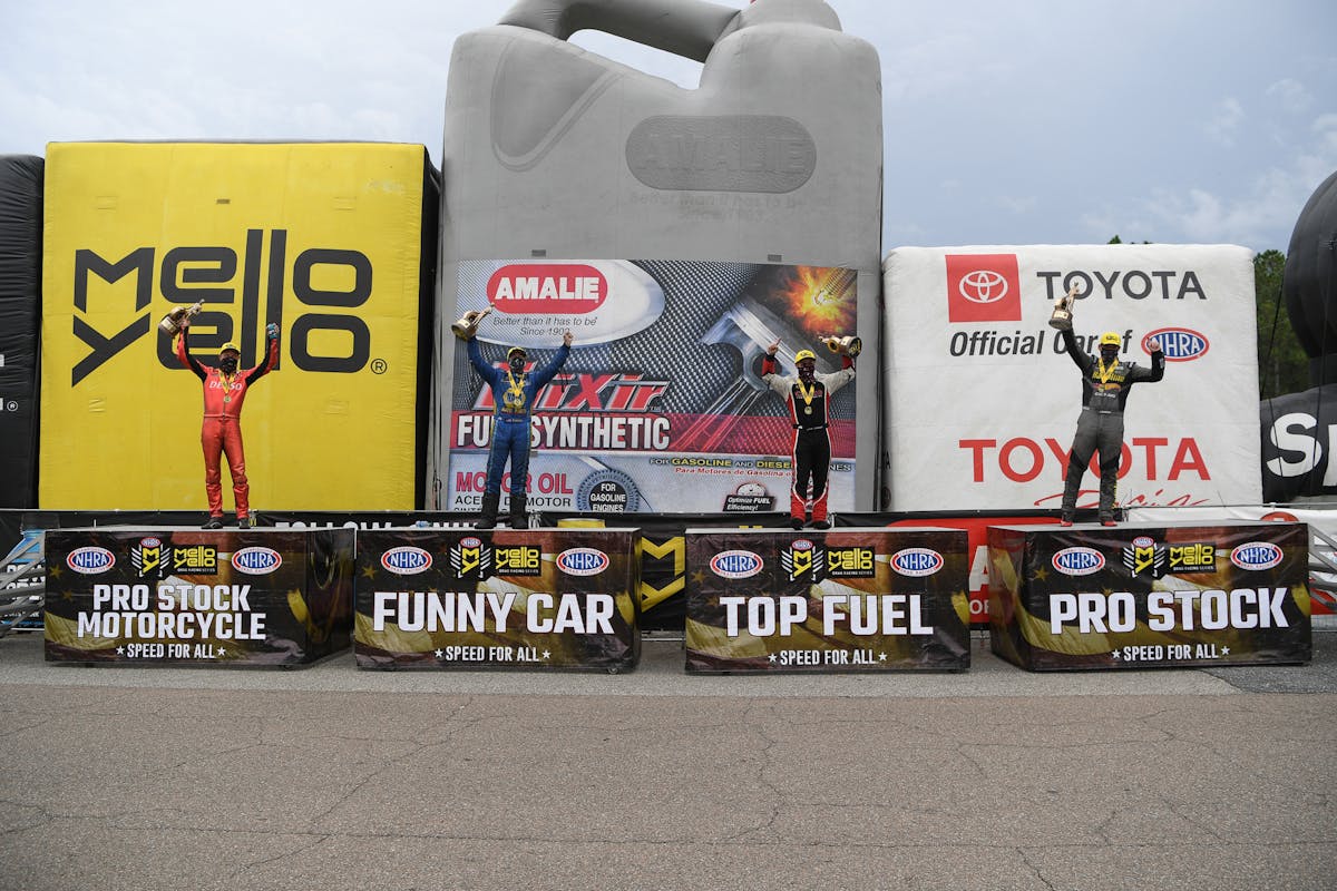 Top Fuel world champion Steve Torrence drove to victory and the series points lead on Sunday at the AMALIE Motor Oil Gatornationals at Gainesville Raceway, joining Ron Capps (Funny Car), Alex Laughlin (Pro Stock) and Matt Smith (Pro Stock Motorcycle) in the winner’s circle at the seventh race of the 2020 NHRA Mello Yello Drag Racing Series season.