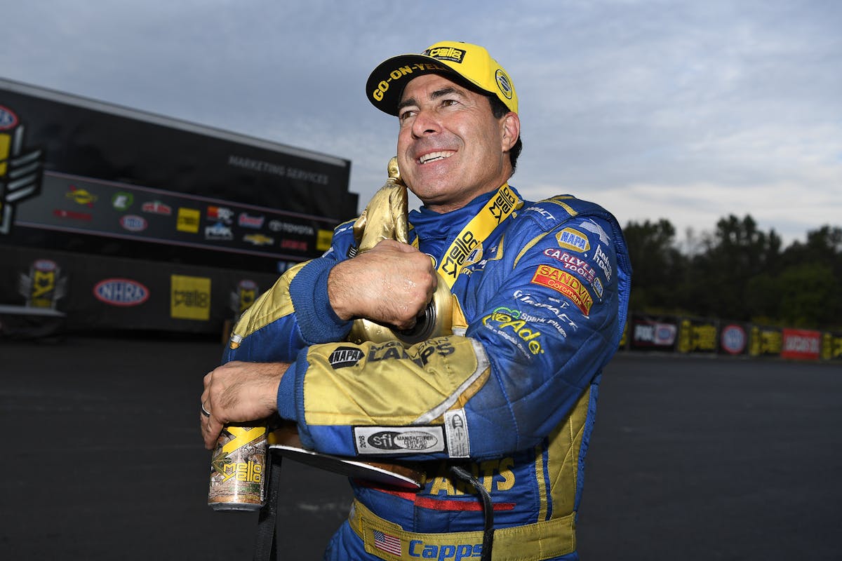In Funny Car, Capps picked up his third victory in 2018 and 61st of his career after going 3.890 at 331.20 in the final round in his NAPA Auto Parts Dodge Charger R/T to defeat J.R. Todd, who slowed to a 4.311 at 214.96 in his DHL Toyota Camry. Capps, the 2016 world champion, earned his third career victory at zMAX Dragway and advanced to the final round with victories over Dale Creasy Jr., defending world champion Robert Hight and Tim Wilkerson to stay in title contention.