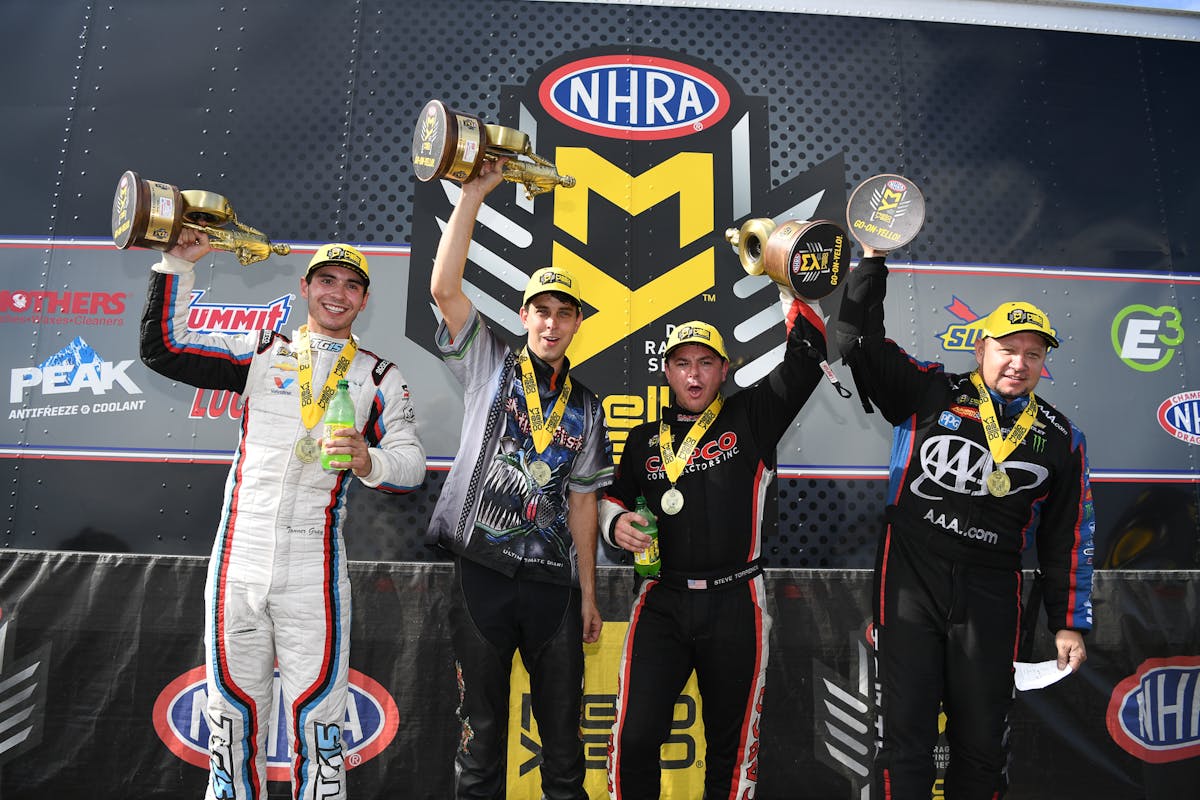 Robert Hight (Funny Car), Tanner Gray (Pro Stock), and LE Tonglet (Pro Stock Motorcycle) were also winners in their respective categories at the third of six playoff events during the 2018 NHRA Mello Yello Drag Racing Series Countdown to the Championship.