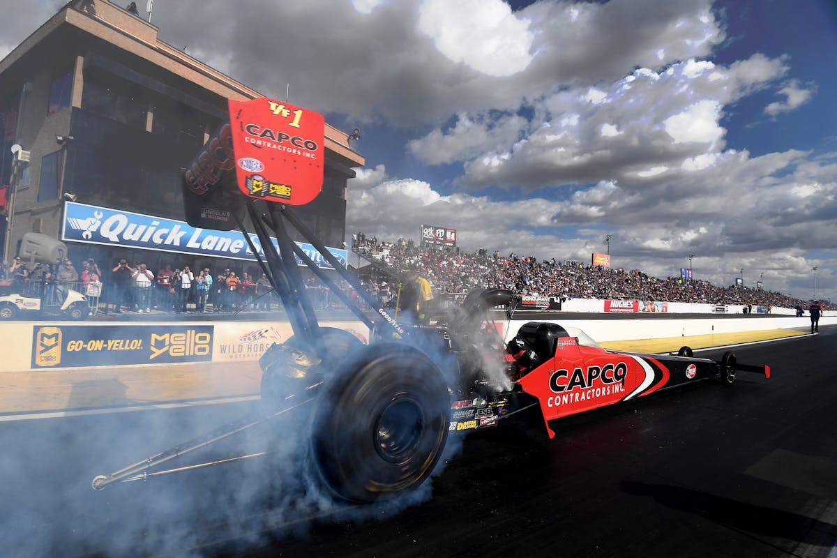 Funny Car veteran, Tommy Johnson Jr. added a trophy to his collection at the 36th annual NHRA Arizona Nationals at Wild Horse Pass Motorsports Park in front of a sold out crowd on Sunday. Sunday’s win marks Johnson’s 18th career Funny Car win and his second in Phoenix.