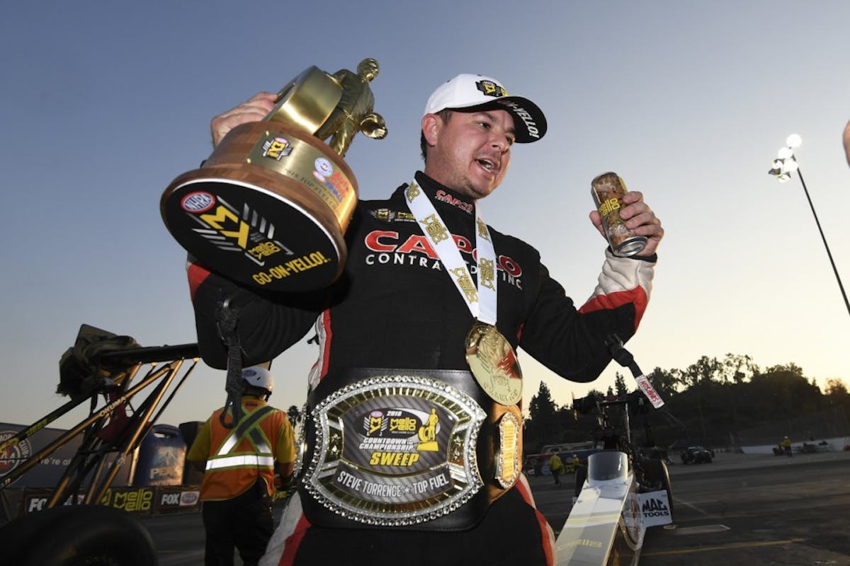 The race winners at Auto Club Raceway at Pomona were Steve Torrence (Top Fuel), Todd (Funny Car), Tanner Gray (Pro Stock) and M. Smith (Pro Stock Motorcycle). For the first time in NHRA history, all of the event winners were also the world champions in their respective categories.
