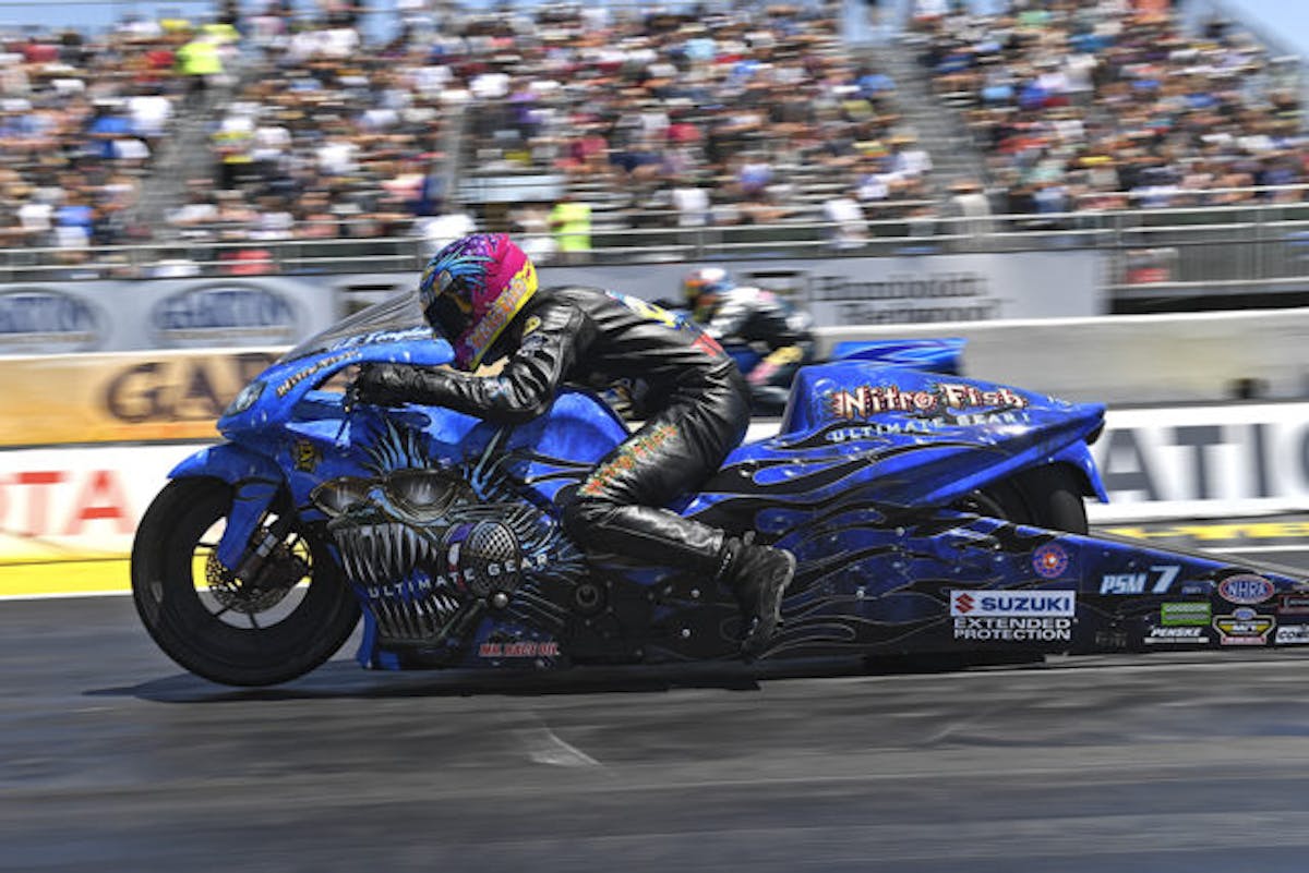 Tonglet finished atop the Pro Stock Motorcycle field with a 6.783 pass at 197.02 on his Nitro Fish Racing Suzuki to narrowly defeat Matt Smith in the final round. After securing his first Mickey Thompson Tires Pro Bike Battle on Saturday, he notched his fifth national event victory of the season and 15th of his career.