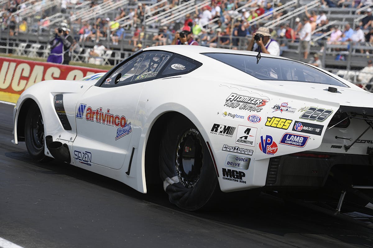 Frigo raced a 6.318-second pass at 203.68 mph in his Artivinco Racing / Fuel Tech late model Corvette to defeat veteran Troy Coughlin who ran a 9.079 at 122.76 in his JEG’s Mail Order Corvette.