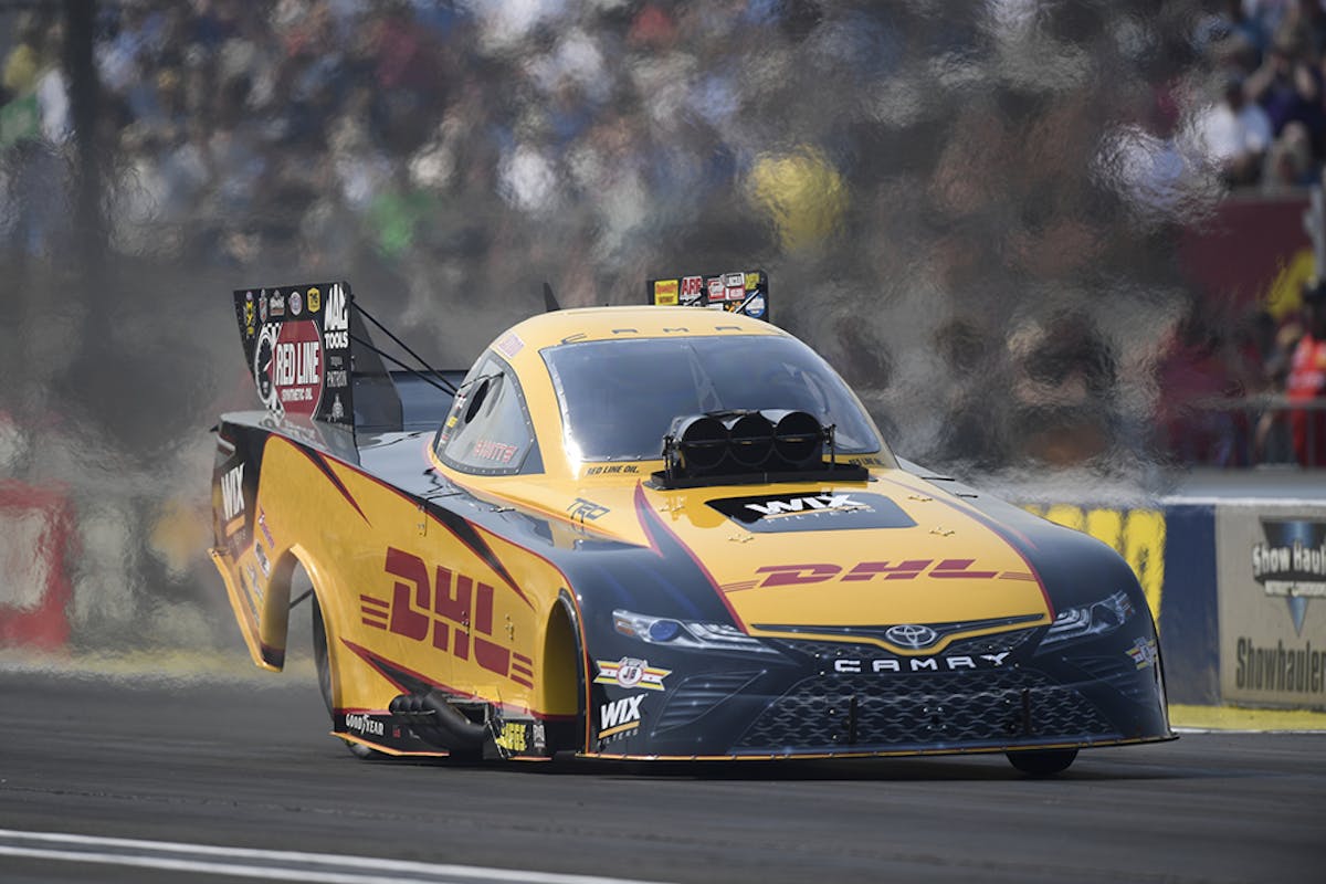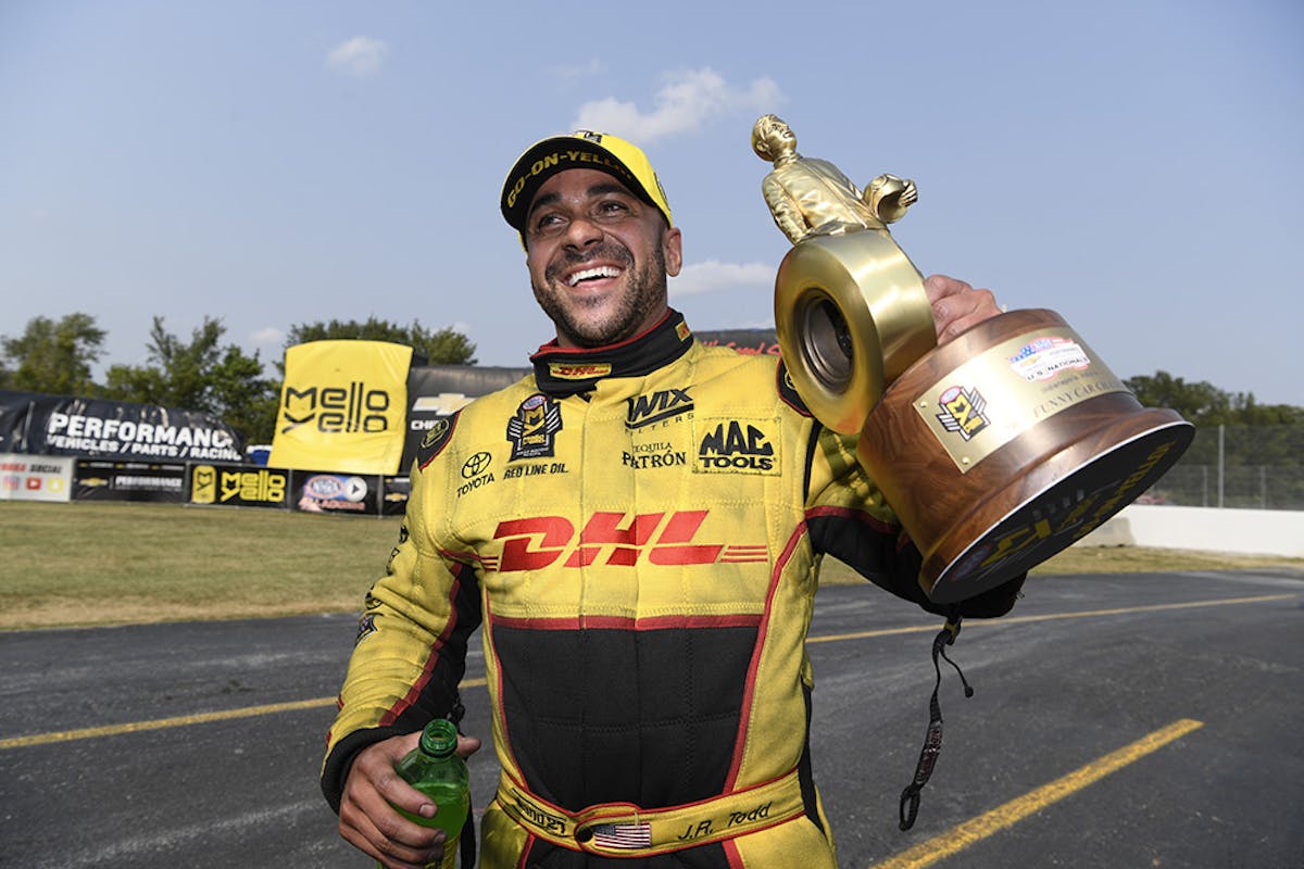 Todd, an Indianapolis native, powered past Funny Car reigning world champion Ron Capps with a 3.949 pass at 325.53 in his DHL Toyota Camry to better Capps’ 3.923 at 325.61 in his NAPA Dodge Charger. It is Todd’s first career win at the Chevrolet Performance U.S. Nationals, his second of the season and of his Funny Car Career.