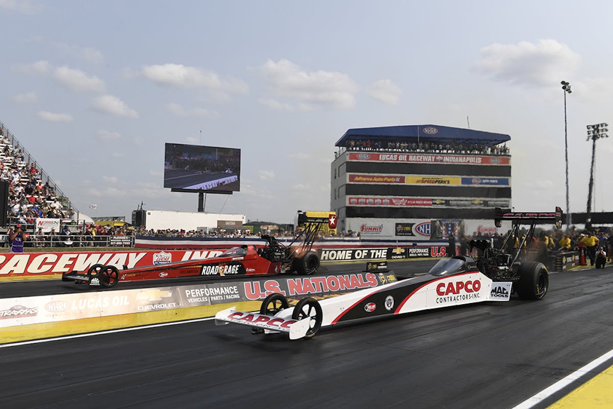 Steve Torrence piloted his Capco Contractors dragster to the Top Fuel victory Monday at the Chevrolet Performance U.S. Nationals, the world’s biggest drag race, at Lucas Oil Raceway at Indianapolis.
