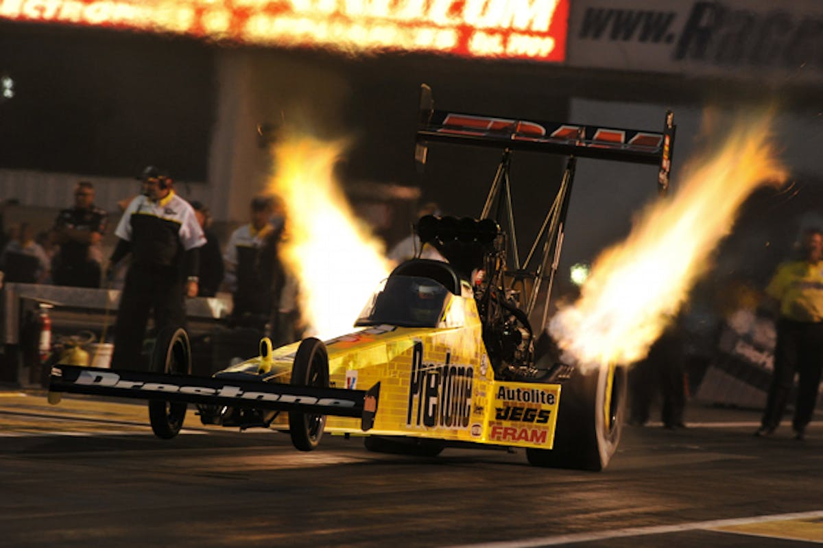 Torrence beat Tony Schumacher and Spencer Massey in earlier rounds with quicker reaction times and then used a horsepower advantage to edge Brandon Bernstein at the finish line in the final round.  In the final, Torrence’s Capco Contractors dragster finished in 3.800 seconds at 323.66 mph while Bernstein’s MAV TV/Lucas Oil machine trailed with a 3.807 at 321.04.