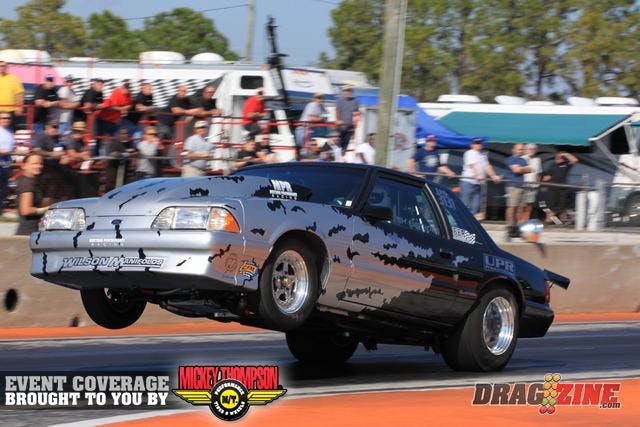 Tim Eichhorn carried the wheels out in his NA fox body Mustang but clicked it early with a 5.51 @ 102 MPH.Kevin Fiscus put up another 4.40 @ 182 MPH blast in the first session of Limited Street qualifying after running a .40 last night in testing. The Pro Lite Battery/Hurricanne Performance Fiscus/Klugger Racing team is based in Jacksonville, Florida.Will Stevenson amde it here with a borrowed F3-R135 Procharger and sits second in class with a 4.47 @ 167. Kevin Smith from KSR Fabrication just finished up new 5 inch piping and a Wilson 123 mm throttle body install. The car also now has a 2 speed TH 400 trans from ProFormance Transmissions.