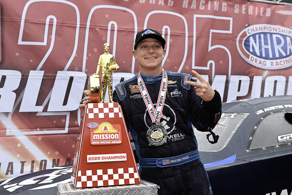 Austin Prock didn’t just defend his Funny Car title, he did it with authority. In only his second year in the class, the John Force Racing driver delivered a crushing season in his 12,000-horsepower Cornwell Tools Chevy SS: nine wins in 19 races, 12 final rounds, and seven No. 1 qualifiers.