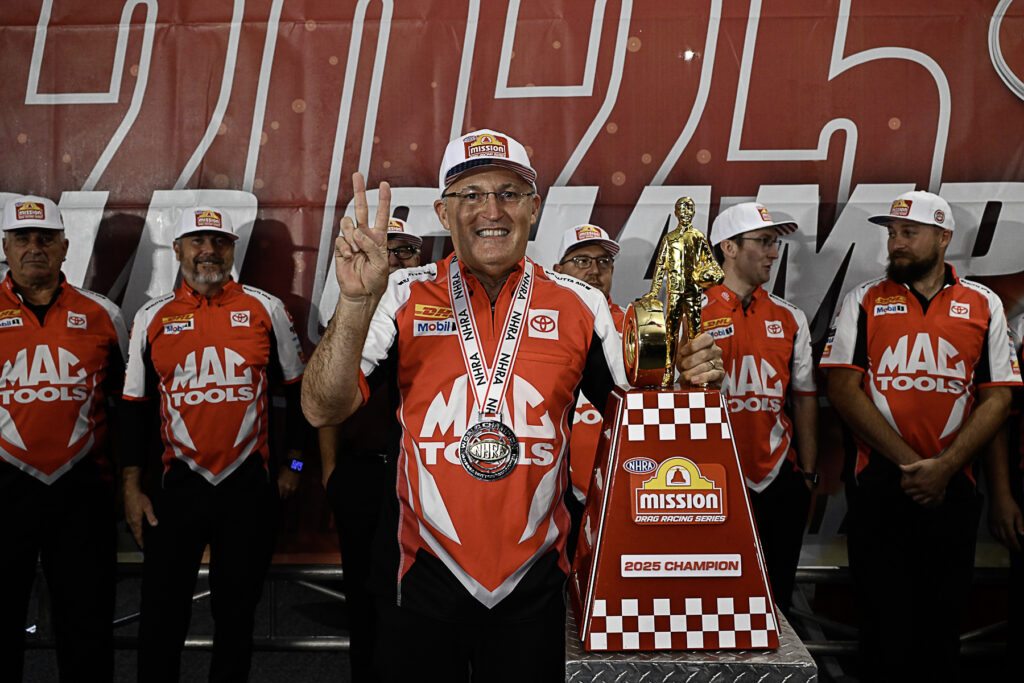 Kalitta’s path to the title was built long before the skies opened over Pomona. His Alan Johnson-tuned Mac Tools dragster came alive at the perfect time, rolling into the Countdown with momentum and then turning into one of the most consistent weapons in the class.