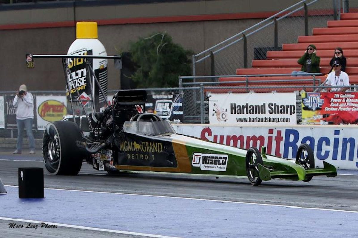 Top Alcohol Dragster driver JP Gutierrez led qualifying with a 5.42 and 261 mph hit from his MGM Grand Detroit/Children’s Center of Detroit car and won with a 5.52 at 259 mph over Brandon Greco’s 6.17 at 128 mph. The top qualified position and the win are firsts for the Michigan-based driver who’s been working his way up in the category he’s been in for five years.