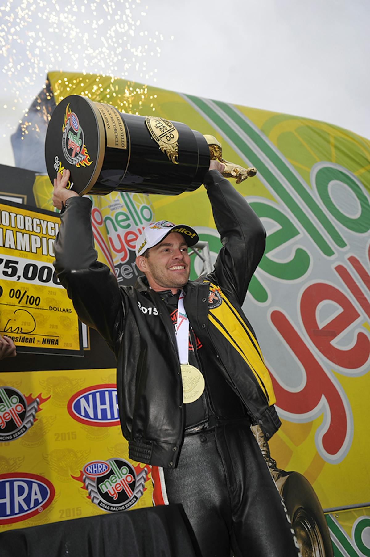 “My outstanding Harley-Davidson team did a great job of keeping me focused and keeping the pressure off of me,” said Hines, who won four races during the season atop his Screamin’ Eagle Vance & Hines Harley-Davidson, including three in the Countdown playoffs. “It was awesome that my wife [Tanya] got to give me a kiss right before I ran, and thanks to my teammate for helping to get the job done. I guess we put the fear of Harley into them. Five championships is pretty awesome.”