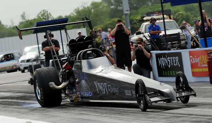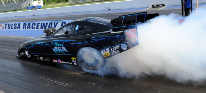 Whiteley, who set low e.t. here last year with a 5.32, ran .40s and high .30s under tougher conditions this time for a commanding lead in the national standings. “There probably was room to run better,” he said, “but we had a lot of stuff backed down. Those were tough, tough conditions. When it’s 100 degrees out, the track is only going to take so much.”