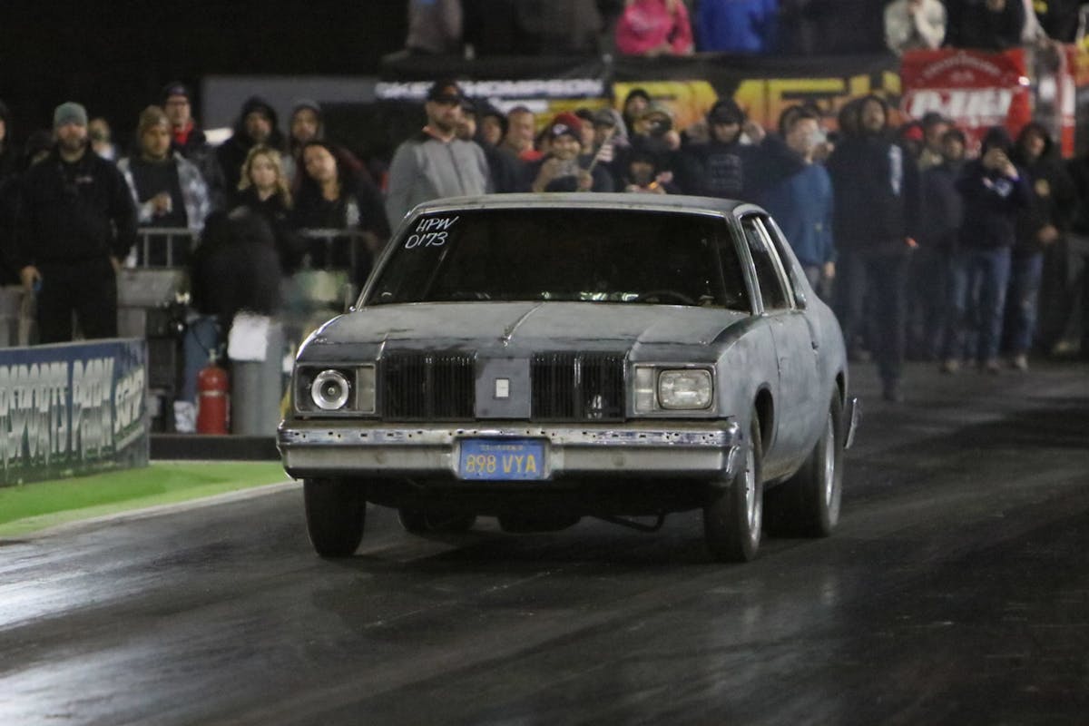 The only team that was ready to go when racing began at SGMP was Midwest Mayhem. The Junkyard Dog Cutlass was the first to fire during the build portion and was the first on the dyno to make a pull, as well. When qualifying began, Team Midwest Mayhem was the first team in the staging lanes to make a hit — but it wasn’t perfect. The Cutlass’s turbocharged mill experienced a fuel pressure issue that kept it from making a strong pass, but it did light the boards with a 6.112 at 111 mph.