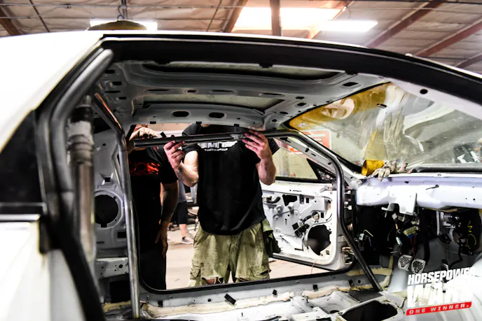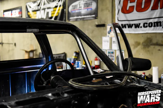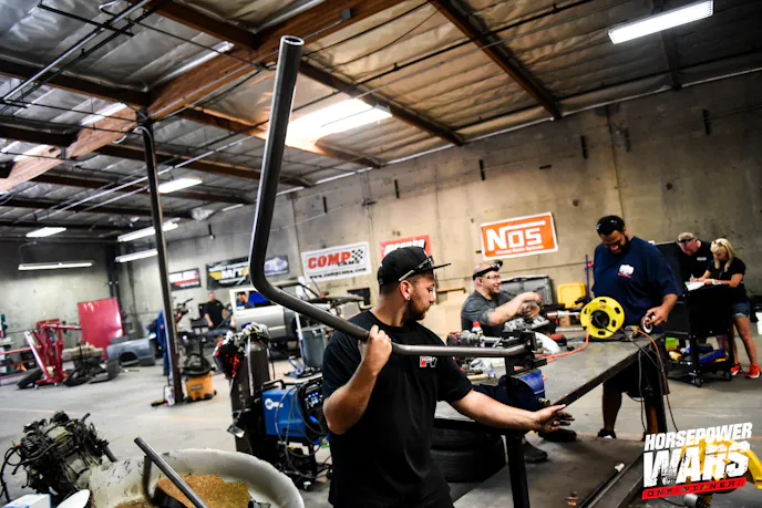 The roll cages, of all things, have become an early source of drama in the Horsepower Wars build center. Team MAK, ignoring instructions from the Horsepower Wars staff to fit by hand and confirm each of the pre-bent roll cages to ensure they were given the right kit – cut, fit, and fully welded the roll cage into its S-10 by the second day of the build. As Team Out In Front went to put the cage in its Mustang, it became evident what they had was not intended for a pony car…but rather, something more akin to an S-10.