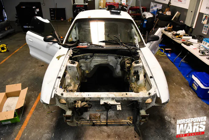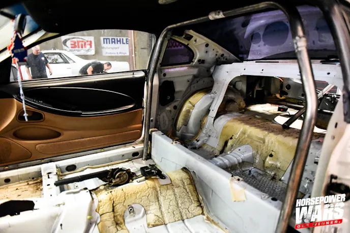 The $10K Drag Shootout is always a torrid affair out of the gate, like a lineup of thoroughbreds being unleashed at the Kentucky Derby, as teams strip the guts out of their respective machines to get them down to a bare shell and a fresh palette upon which to build. The interiors are removed, the engine, driveline, rear suspension, core supports, and so on.