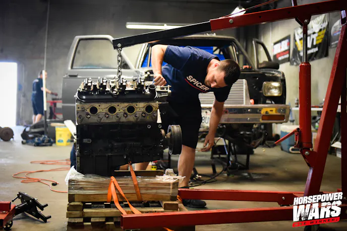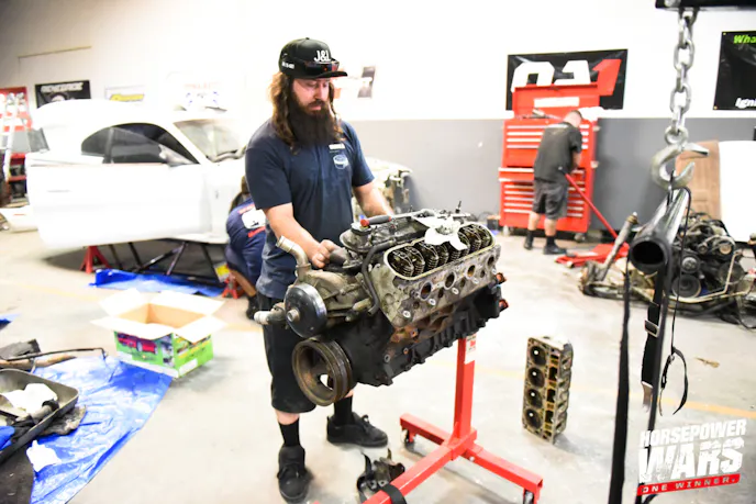 As the teams make the transition from tearing down to building back up, they’re also lining out their engine combinations. As we’ve seen play out in years past, GM’s venerable LS engine platform is really hard to beat — they’re cheap, they can take a lot of abuse (especially if you only need one to survive for a few passes on boost), and because they were put in millions of production pickup trucks, SUV’s, and cars, you can literally find one anywhere. Each of the last two seasons a team has built a nitrous-fed big-block, and last year the extra effort nearly paid off with a near-win by Team Bigun…but this year, all four teams have chosen the LS engine. But they’re not all using the same iteration.