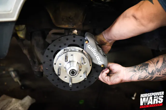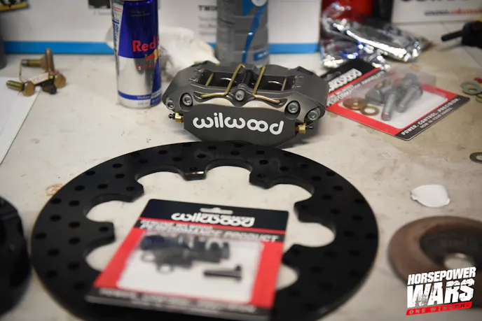 Since most of the teams are keeping the factory front control arms on the cars for the sake of budget, one of the first items to go on many of the cars is the brakes. Each year, front brake kits are provided to the teams as a safety measure, and this year, the team at Wilwood, one of drag racing’s leading brake system manufacturers, has supplied its Forged Dynalite kits
