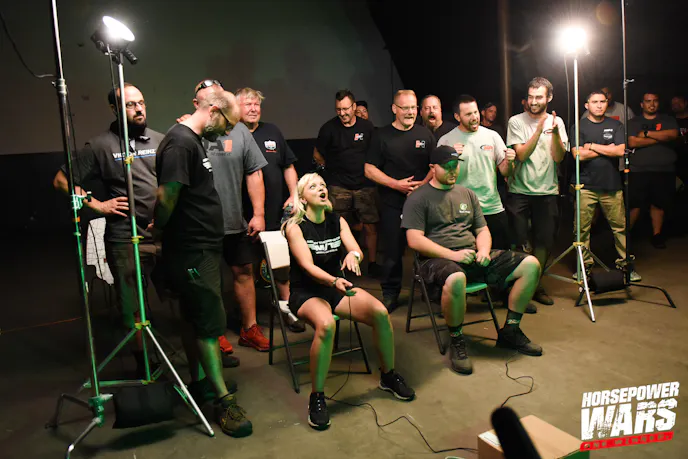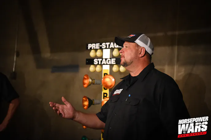 The end of day two of the build also brought the teams their first challenge. The folks at Weld Racing sponsored this mano-e-mano battle between the drivers of each of the four teams in a best-of-three practice tree competition, with the winner given the choice of any in-stock set of Weld Racing wheels from the catalog at Summit Racing Equipment. Not only would winning this competition make someone’s car look super-fly, but it would also mark a line item off the budget the team would need to use on its build.