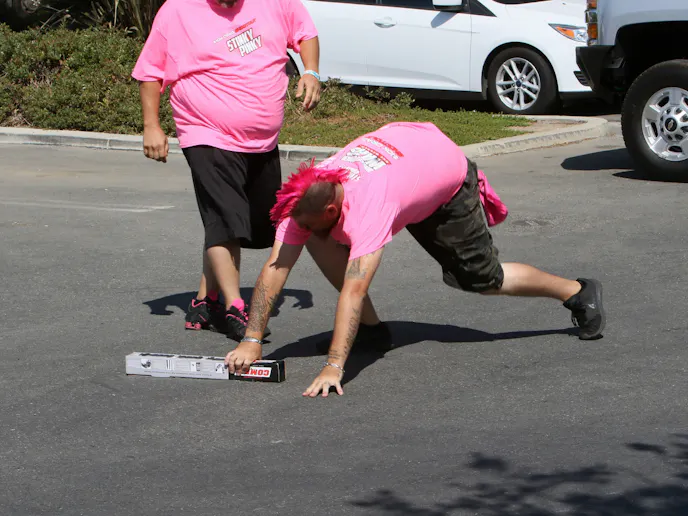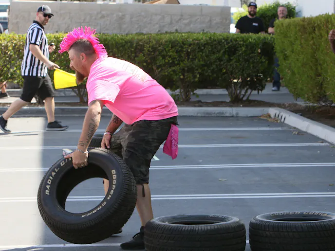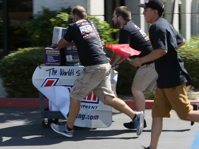 The first event in the $10K Olympics was the creeper push, where one team member had to push another on a shop creeper on a tight course inside the build center. After the competitors were done racing through the shop, the next teammate had to participate in the wheel mount challenge, where they had to mount a wheel and tire with a ratchet as quickly as possible. The wheel had to be tighter than finger tight or they would receive a hefty penalty.