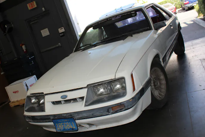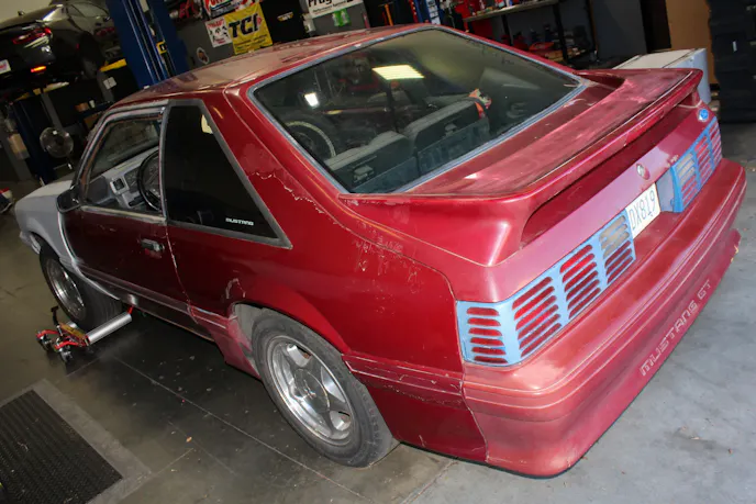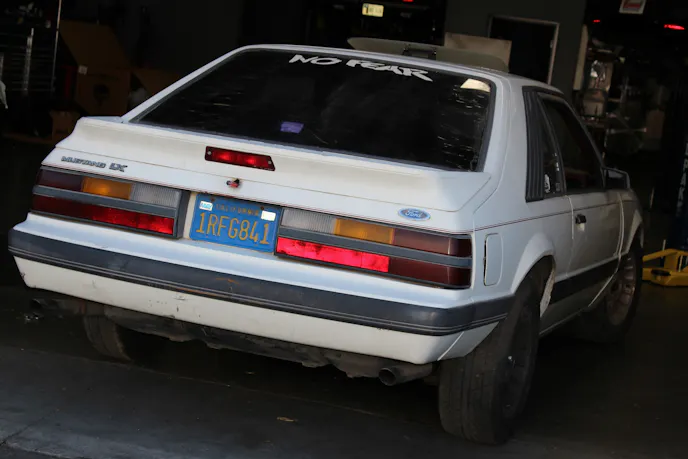 The final option for the $10K Drag Shootout teams was a 1986 Ford Mustang LX that has a whole bunch of character, from the aftermarket sunroof to the totally radical sticker package. This specimen has been sitting since 1997… like it was almost waiting to be selected for this competition. It features a questionable trunk latch, sketchy interior, and window tint that is missing in places. This ride is highly prized by all the teams because of its 8.8 rearend and the factory four-link style suspension that’s perfect for drag racing.