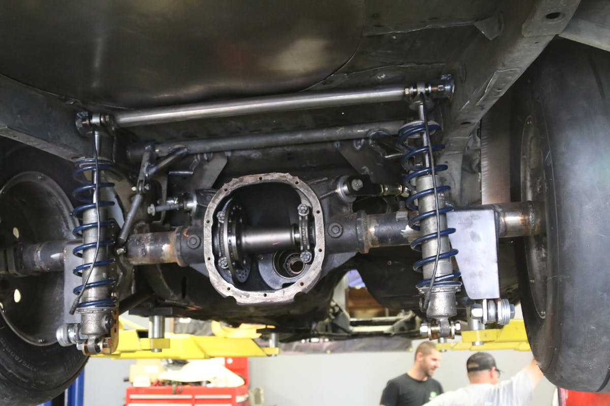 Team Boddie decided to go with a Ford Explorer 8.8 rearend. Yes, a Ford Explorer….equipped with 31-spline factory axles, the team welded the spider gears in the differential, along with 3.73 gears. Combined with a unique 4-link made of tractor supply parts and a home-built rear anti-roll bar, this was pretty awesome to watch them put together. They finished off the suspension with a set of used QA1 shocks for the front and rear.