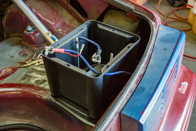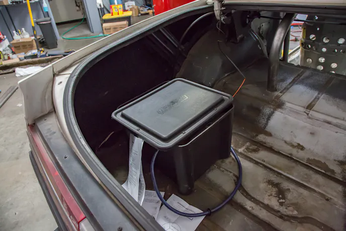 Finally, but certainly not least, Moroso’s NHRA-legal battery box, on-off switch, and battery installation kit got mounted. Each team got these items from Moroso to make sure that we were safe and legal.