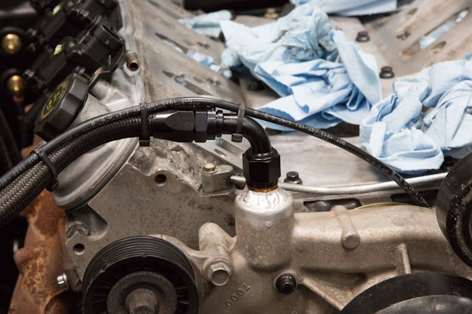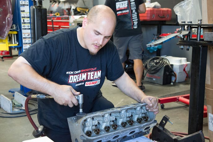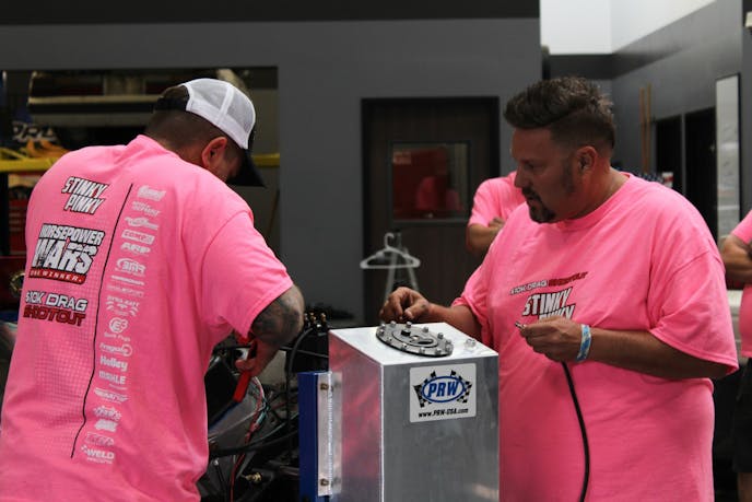 On the other end of the spectrum, Team Bigun continued to lead the rest of the teams when it came to the assembly of their car. The team powered through various issues and got the engine buttoned up and plumbed with fittings from Fragola for the fluid systems. After they tested for leaks, Team Bigun was able to become the first team in the $10K Drag Shootout to fire their engine in preparation for the dyno session.