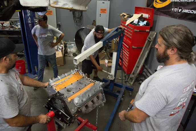 Money wasn’t the only issue for Team Stinky Pinky as their big-block Chevy assembly wasn’t going as planned. The team ran into continued problems as they tried to put the engine together while the other teams were finishing up their powerplants. Eventually, Team Stinky Pinky was able to get their big cubic-inch Chevrolet assembled and topped it off with the intimidating roots blower.