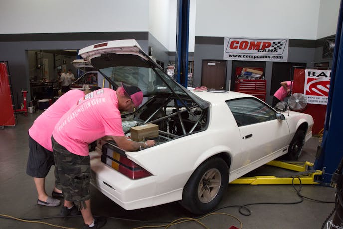Team Stinky Pinky is filled with big personalities, so it’s no surprise they’re stuffing a big-block Chevy into their Camaro with a set of ProMaxx 317cc big-block heads that are held in place by a set of ARP fasteners. Sitting on top of that big old American engine is an equally big 8-71 Littlefield blower and Holley carburetor. Rotating inside the engine is an Eagle crankshaft and connecting rods, along with a set of new Mahle slugs. A custom COMP Cams camshaft will give the blown beast its own unique idle.