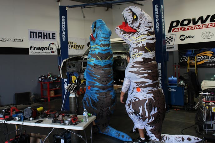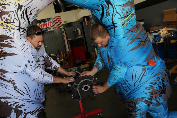 Having the quickest time in this challenge would net the winning team a lightweight PRW harmonic balancer, an extra $250 towards their build budget, and a killer PRW engine test stand. The team who clocked the slowest time had to dawn inflatable T-Rex suites for a full hour in their bay as they worked. When the dust settled and the competition was over Team Bigun picked up their second challenge win , while Team Boddie never finished as the engine never started, and had to become dinosaurs for a full 60 minutes.