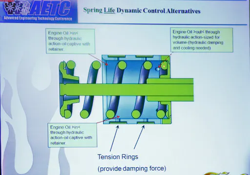 Jason spoke on valve spring science, selection, and optimization for best performance and longevity. “The further you go for performance, the higher the load is on the spring and the shorter the life is of the spring.” Jason explained. “Oiling is also a large factor in determining spring life.”