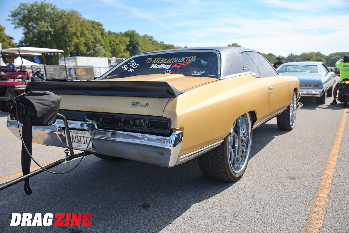 The 1971 Impala that Speed pilots runs on 26-inch wheels and tires. To make the wheel package fit, Speed mini-tubbed the car, notched the frame, braced the frame, and upgraded the Impala’s suspension. Speed got into big-wheel racing because of the fun atmosphere at the events. According to Speed, once you get a big-wheel car sorted out, it drives better than most race cars at the track.