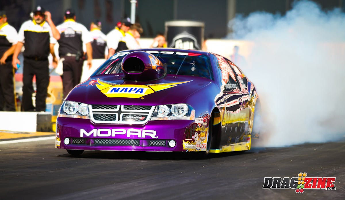 Perhaps it was a thought about IndyCar star Dan Wheldon, who had lost his life that day just a few hundred miles away at Las Vegas laced with grateful affirmation that he, the business student at Adelphi University, was so incredibly fortunate to drive the NAPA / Mountain View Racing Dodge Avenger. After all, his team owner was Nick Mitsos, who lived 2,500 miles across the country in Rancho Cucamonga, Calif., and in a different culture than his own drag-racing family from Long Island.