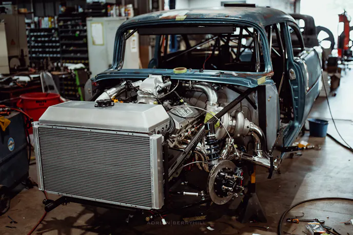 The Taylor’s intend to eventually build a fresh, new engine for the ’55 that’s more capable of reaching their goal of running in the sixes than the present one robbed from Dennis’ Nova.