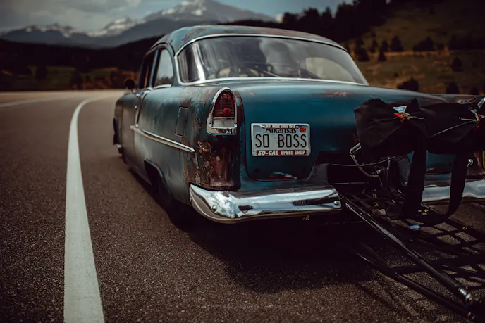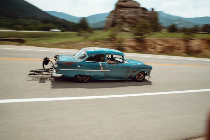 After working nearly around the clock on the ’55, in the end, they missed their target of attending the Midwest Drags and came “devastatingly close” to being done in time for Rocky Mountain Race Week. So close, in fact — Alex says about eight extra hours in the bank and they’d have made it — that the car was finished after the event had begun, so the Taylor’s took the car and joined the convoy on the top through the Rockies anyway, despite not being credited with any official participation. In all, they put 750 mountainous highway miles on the car, and a pair of hits on the dragstrip, to break it in right.
