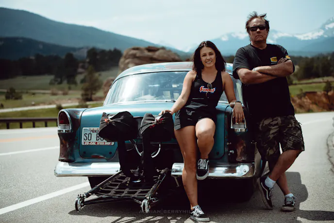 So that’s precisely what father-daughter drag-and-drive stars Dennis and Alex Taylor did at Rocky Mountain Race Week a month ago. Dennis, who has campaigned a turbocharged Nova and Alex a boosted Camaro for many a years at such events — enough so to be shoe-in hall of famers if there were such a thing — had spent the brunt of the prior month sleeping barely an hour or two a night in a mad thrash to get their new 1955 Chevrolet running. The build, a four-month process in all, didn’t even exist on paper, much less in any physical form, in January. When it was finally complete — admittedly minus a few small corners cut for the sake of time — they didn’t step back, admire their work, and get some much-needed rest as an ordinary, non-automotive person might expect…no, they had somewhere to be.