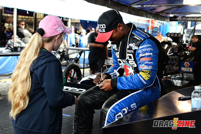 As for the DSR dragsters not sharing the wealth right now, Brown said, “We have three strong cars, and we bow out against each other. That’s what really helps raise the bar at Don Schumacher Racing. We have a good, fun competition with each other, and that’s what pushes us to new levels to race with the other guys, because they’re coming, too.”