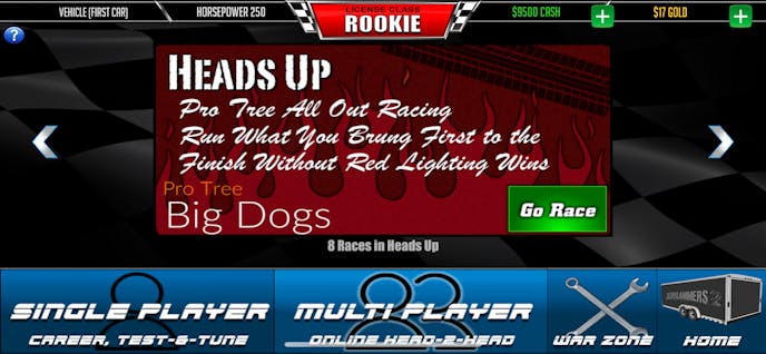 As we alluded to earlier, this is merely a starting point, just as it is in the real world. Most bracket racers prefer to be the “chaser” rather than the “chasee,” so as you accumulate cash from your winnings, you can upgrade the parts on your car, give it a flashy paint job, and get quicker and faster with time. You may also choose to build the car to specific rules for heads-up categories and take in online competitions — or even buy some Pro Modified cars to ,maximize the potential of the game. The beauty of this mobile game — like real-life — is there’s something for everyone, and even if you don’t have hundreds of hours to test a heads-up car to wring every ounce of performance out of it, you can still enjoy hitting the tree, shifting gears, and busting your buddys’ chops.