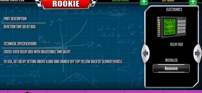 First, navigate to Garage, then to Tune, then Timing; there, you’ll want to purchase a Line Lock. Once you’ve done that, it will unlock the Delay Box for purchase. Without these tools, you’ll be taking a knife to a gunfight in the online bracket races.