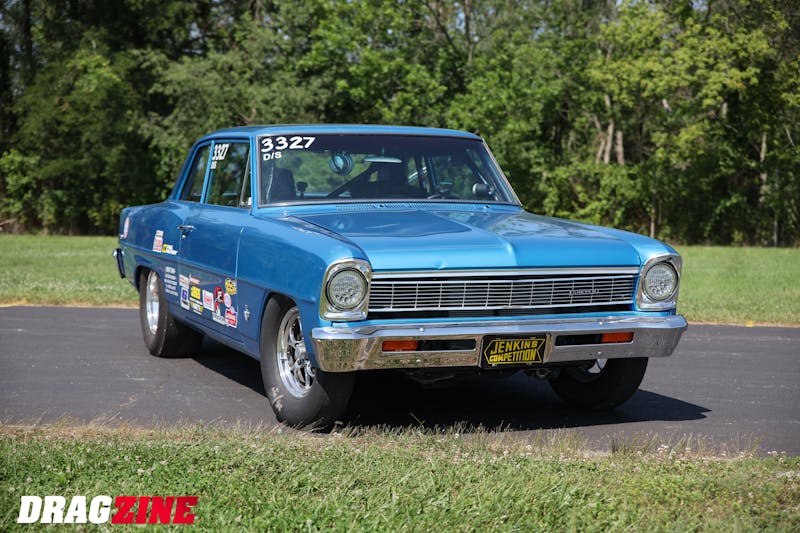 The ’66 Nova’s signature style is a no-nonsense, mild wheelie off the starting line which has given Tucholsky plenty of great launch photos over the years. Also captured in every photo is the touching tribute to the late Bill “Grumpy” Jenkins with a Jenkins Competition license plate up front, along with a plethora of contingency decals to supplement hard-won purses and prizes with additional payouts.