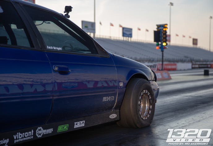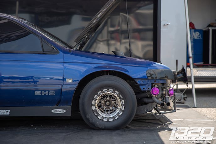 Inside, Zach has completely stripped the car of its interior front to back, making its utility purely for drag racing. An 8.50-certified roll cage protects him, while SHO Source coilover shocks provide dampening duties on the front and rear. The rear wheels, if you look closely, have also been extended 2.5-inches rearward to provide improved traction and handling. All told, the grocery-getter weighs just 2,670-pounds with Zach in the seat.