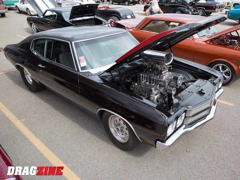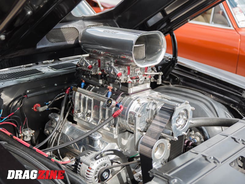 With only a fiberglass hood on the weight-loss list, the car tips the scales at 3,450-pounds with Brandon in the seat — not light by any stretch, but trim enough, paired with the big-block mill, to have already clocked runs in the 5-second zone without every switching on the nitrous oxide.