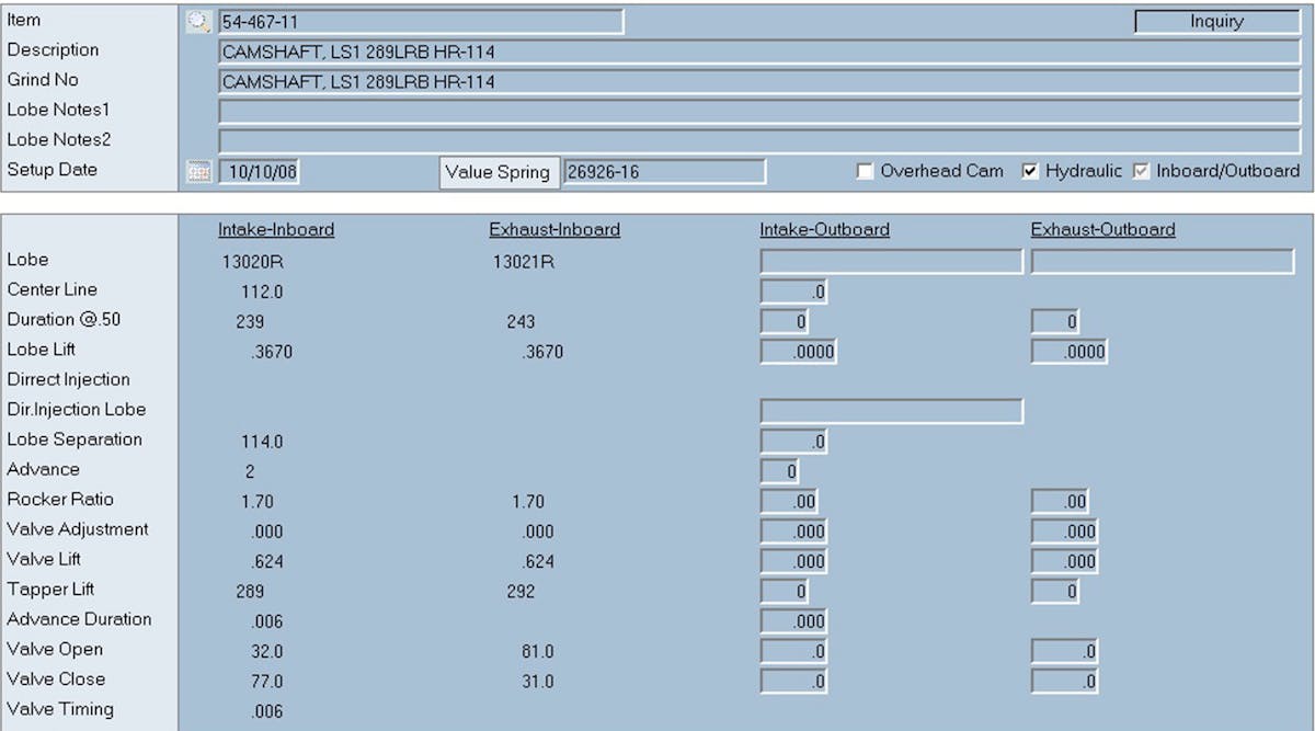Camshaft: COMP Cams LS1 289L RB HR-114 Serial #409437-20 – #CCA-54-467-11