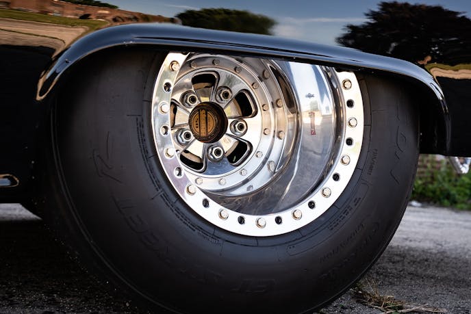 Champion C45 front wheels and Sander Engineering 750-Series double beadlock 15×14 wheels drive Mickey Thompson 315/60/15 drag radials. Stopping duties are handled by Strange Engineering disc brakes and a Wilwood master cylinder.