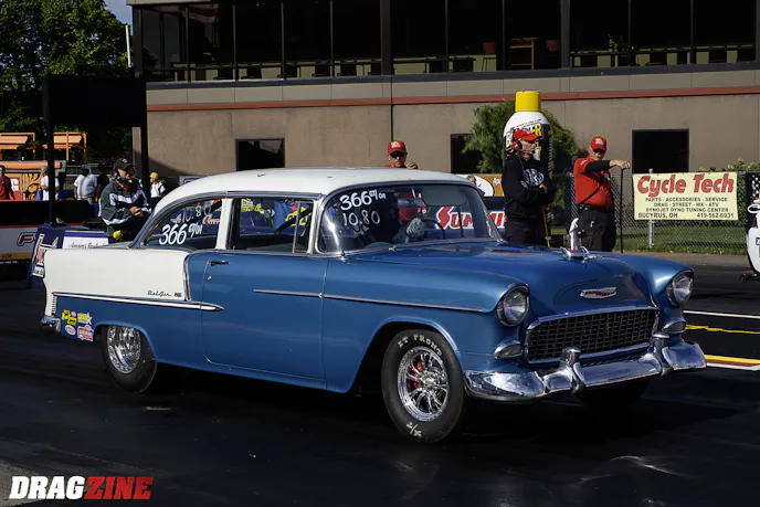 Currently, the ’55 is powered by a small block Chevy and runs in the 10.70 range in Super Stock trim. The car is still rocking pretty much all of its original steel and the two-tone paint just looks awesome. If the near-stock exterior wasn’t giving off enough of a cool vibe, the car still has a full interior. Right now, the ’55 is set up to run several different Super Stock GT classes by adding or subtracting some weight.